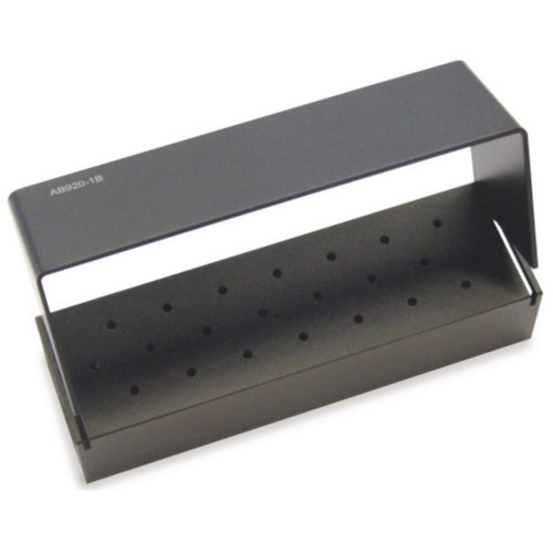 Description High-quality, autoclavable anodized aluminum bur block Top swivels to open 100mm x 50mm x 40mm Holds 39 handpiece (HP) instruments or up to 10 diamond discs