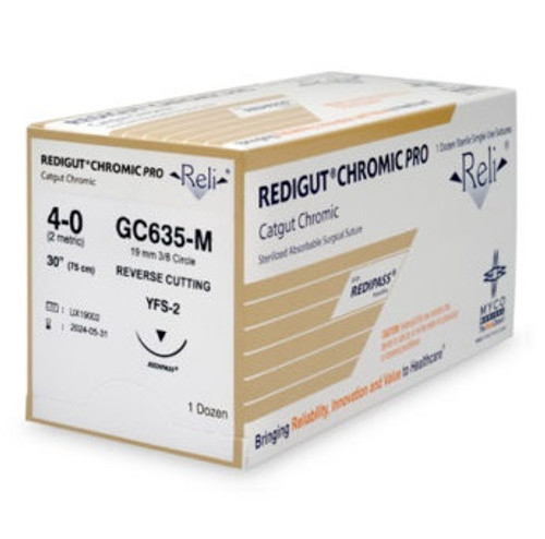 4-0 x 30" Reli® Redigut® Pro Undyed Chromic Gut Suture with FS-2 Needle - 12/Box (GC635-M)