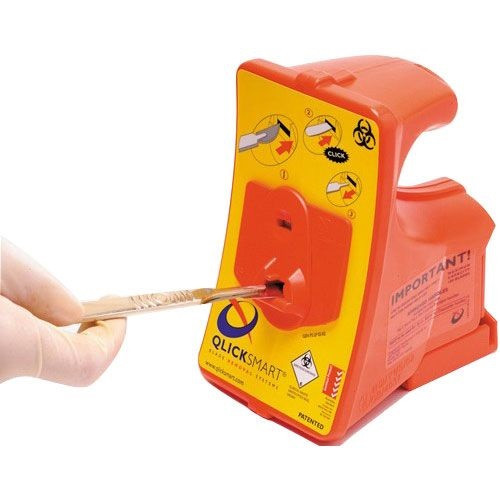 - Acts as a secure sharps container after use